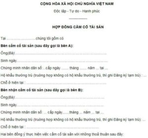 Mẫu hợp đồng cầm cố tài sản chuẩn Bộ luật Dân sự 2015